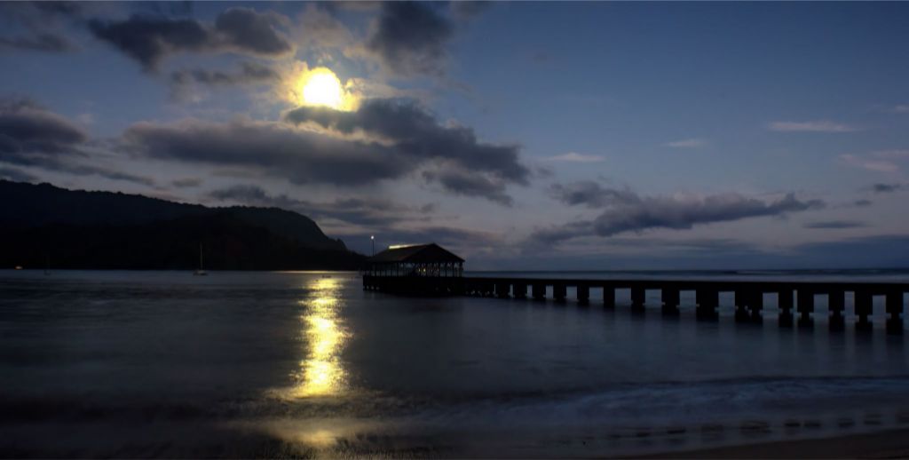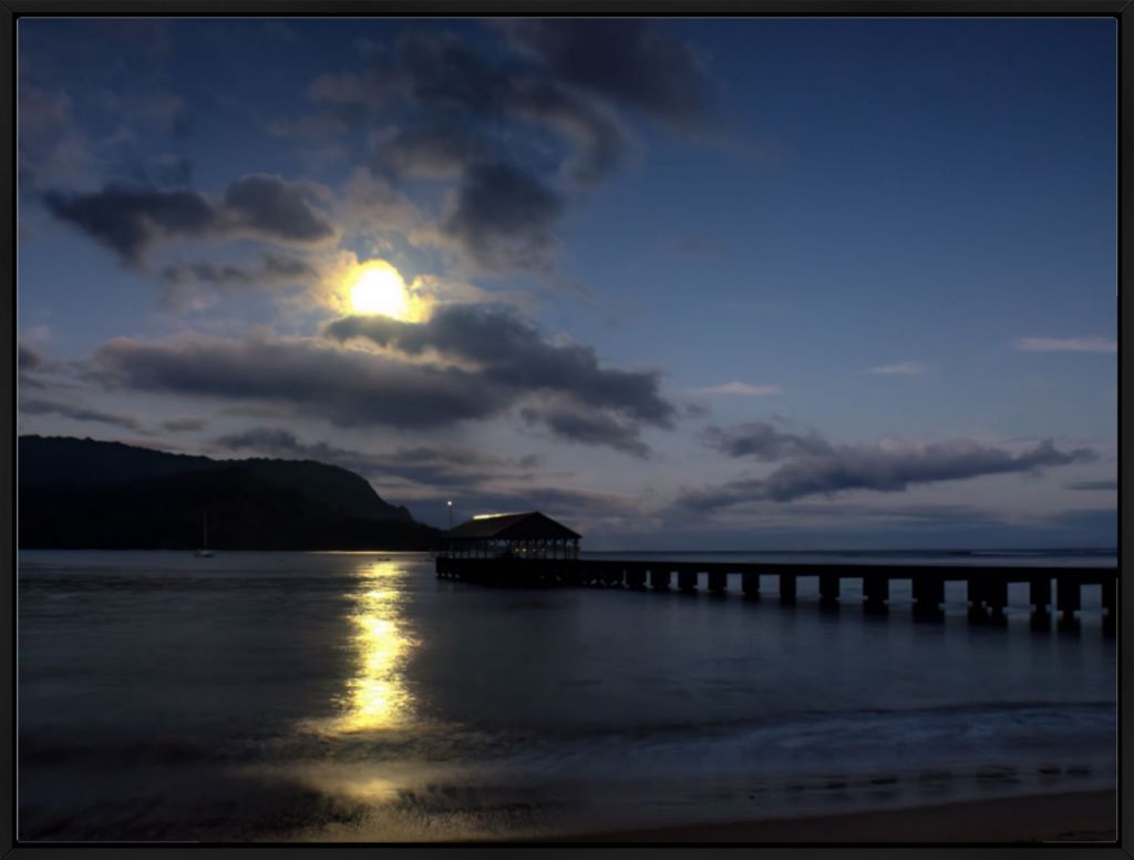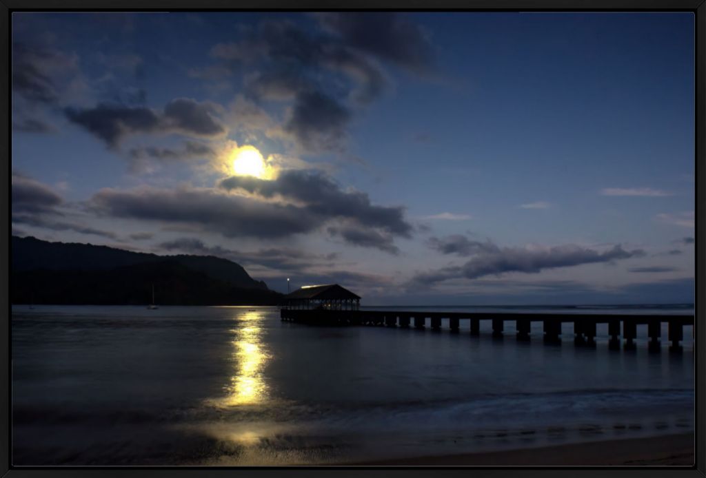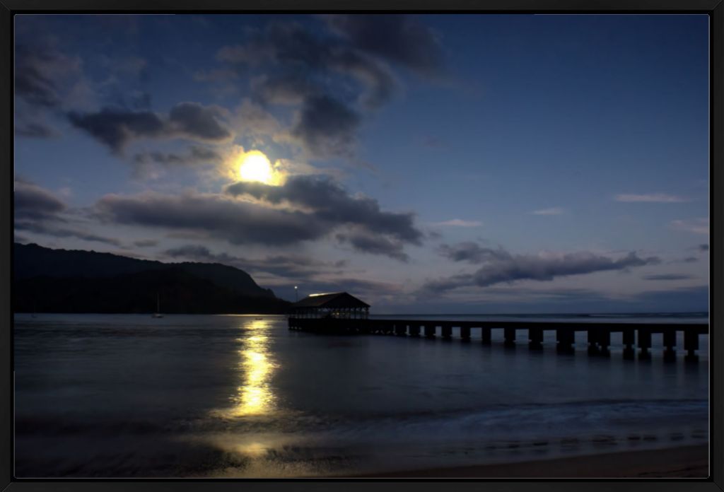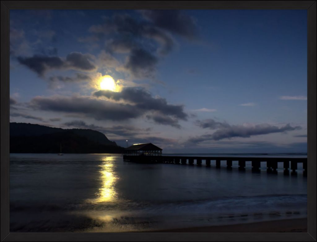 "Moonset at Hanalei Pier" Fine Art Print