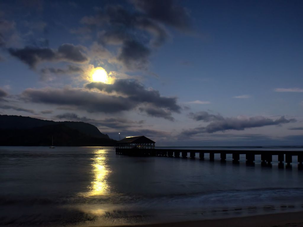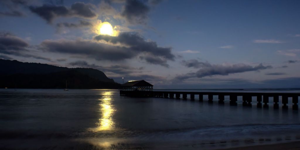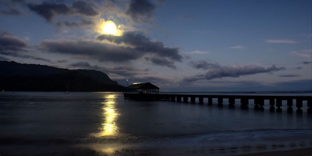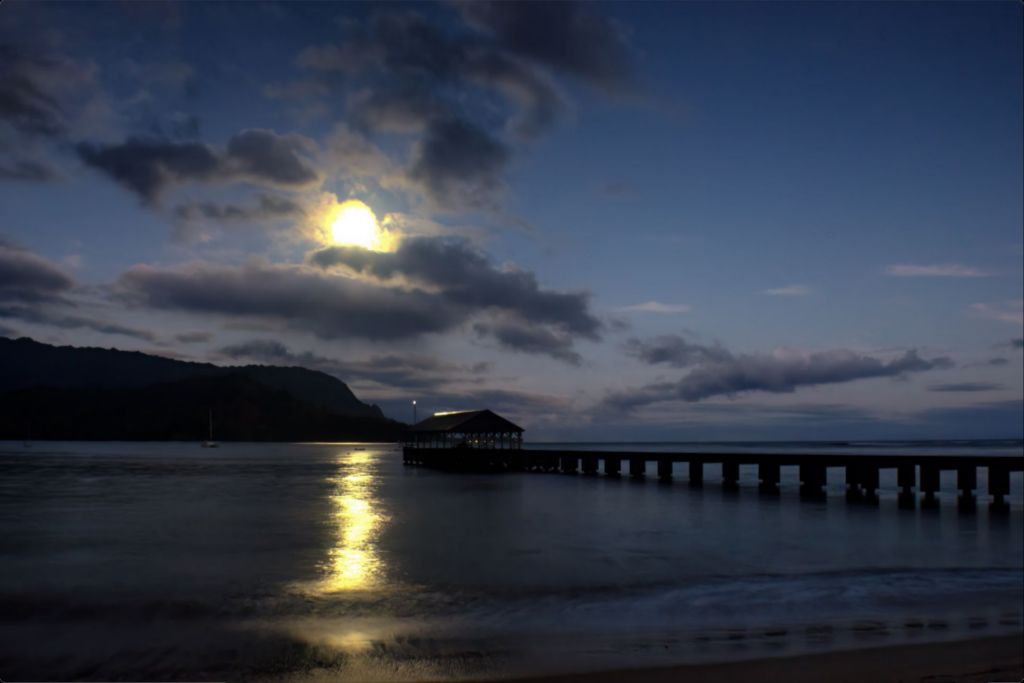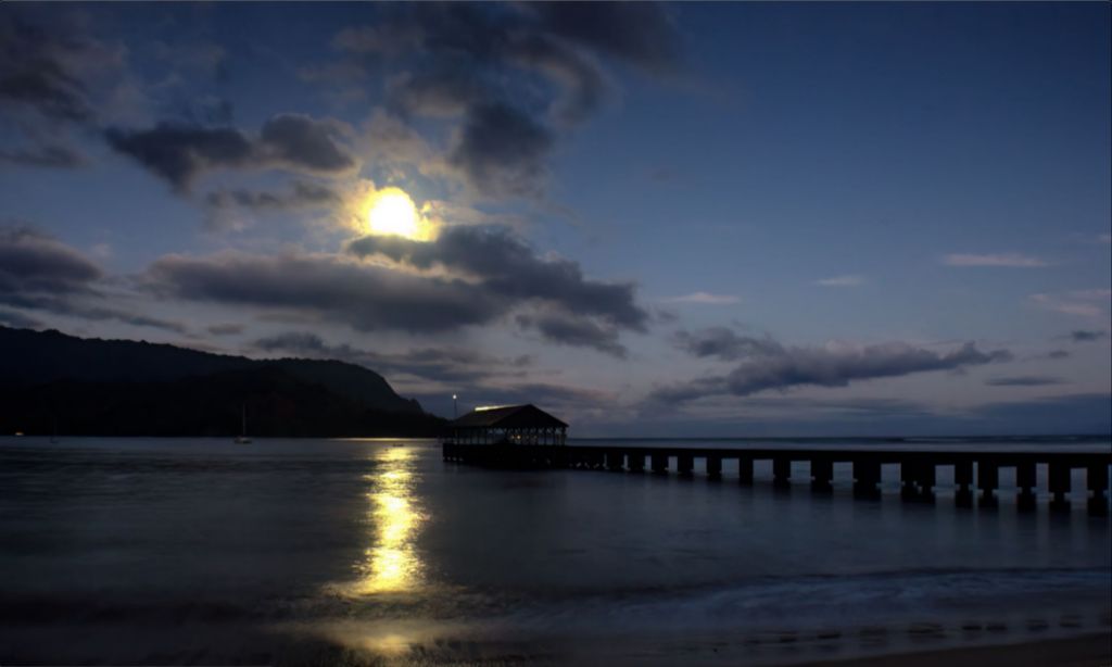 "Moonset at Hanalei Pier" Fine Art Print